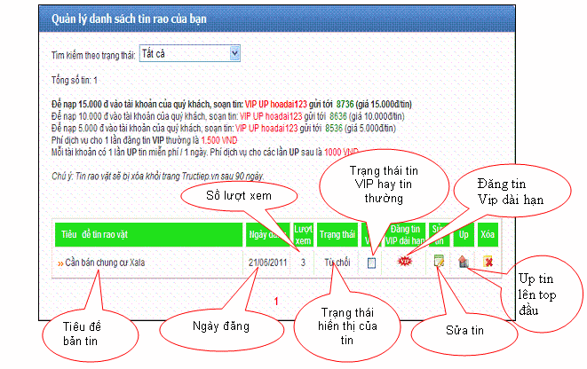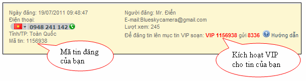 v 3000đ/tin: khi kích hoạt tin thường thành tin VIP hoặc đăng trực tiếp tin VIP qua tin nhắn điện thoại.